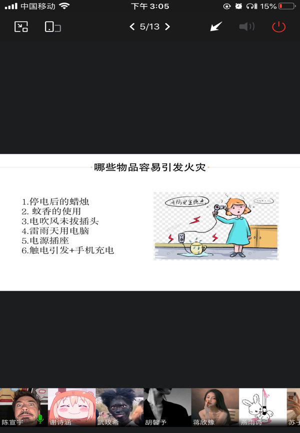 本次活动通过网上主题班会形式开展,自管会员工干部向同学们展示近年来我国发生的一系列重大火灾视频,让同学们了解防火的重要性。接着详细讲解在日常生活中避免火灾的做法、灭火的方法以及具体的逃生举措。最后,提醒同学们要将“防火、安全”时刻牢记于心,在宿舍避免使用大功率电器,不点明火,宿舍无人时把插座电源全部切断。