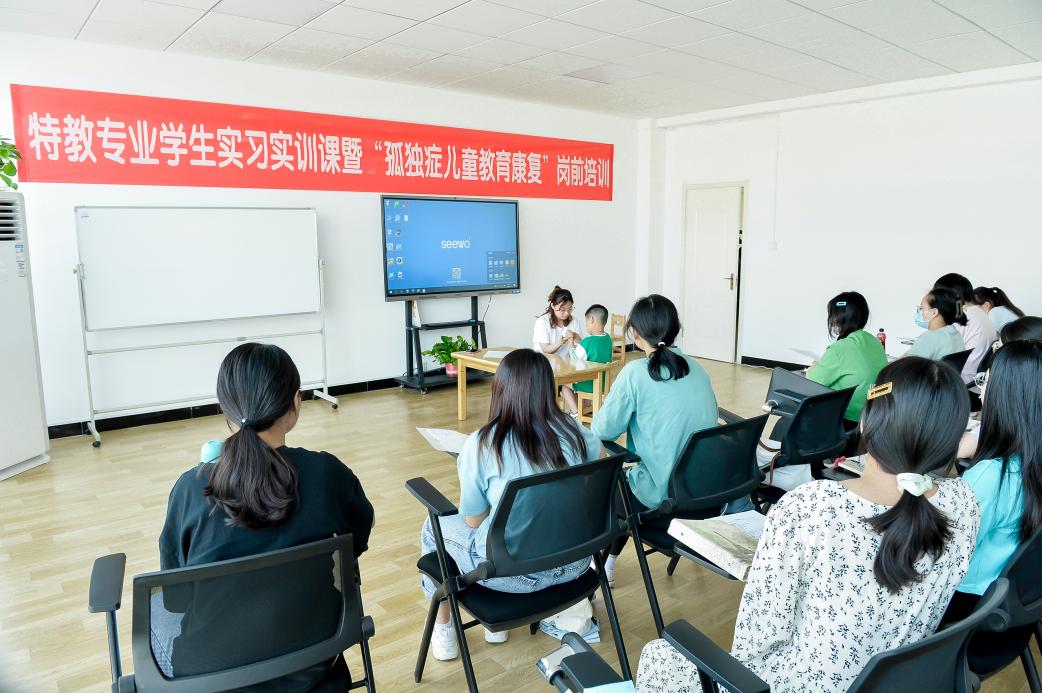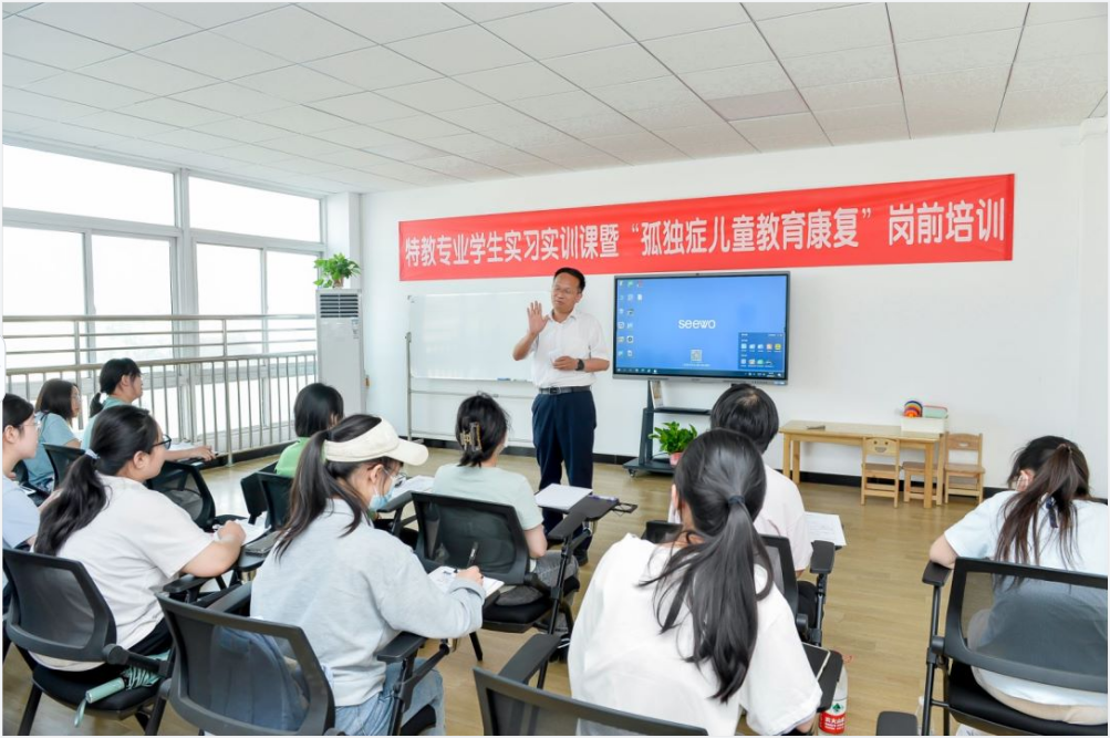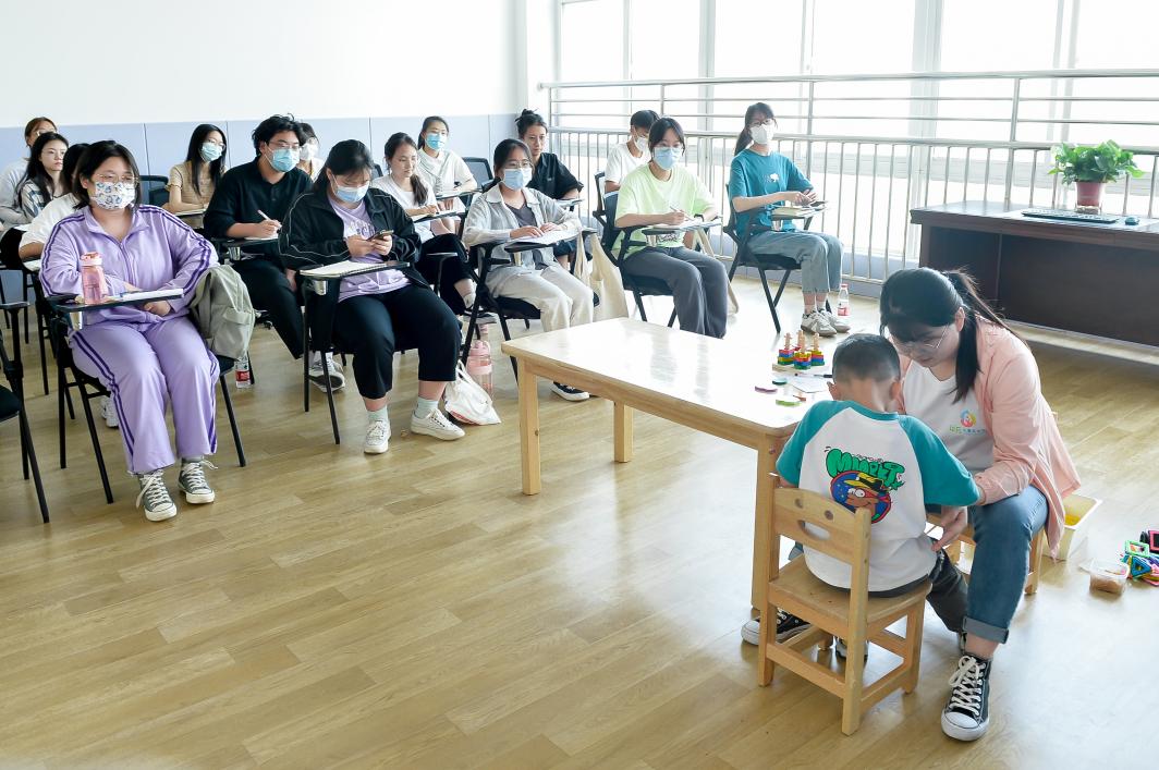 两名特教教师分别上了一节示范课,蔡飞董事长及郭庆老师现场进行了点评。随后蔡飞董事长为特殊教育专业的同学们做了讲座,讲座中详细介绍了应用行为分析方法的相关理论,讲解了该方法在孤独症儿童教育康复中的应用,并赠送了他翻译的《孤独症儿童行为管理策略及行为治疗课程》,同学们深受启发和鼓舞。郭庆老师结合多年从事特教工作的经验,讲述了自己的成长之路,鼓励同学们认真学习专业知识,努力成长为一名优秀的特教园丁。