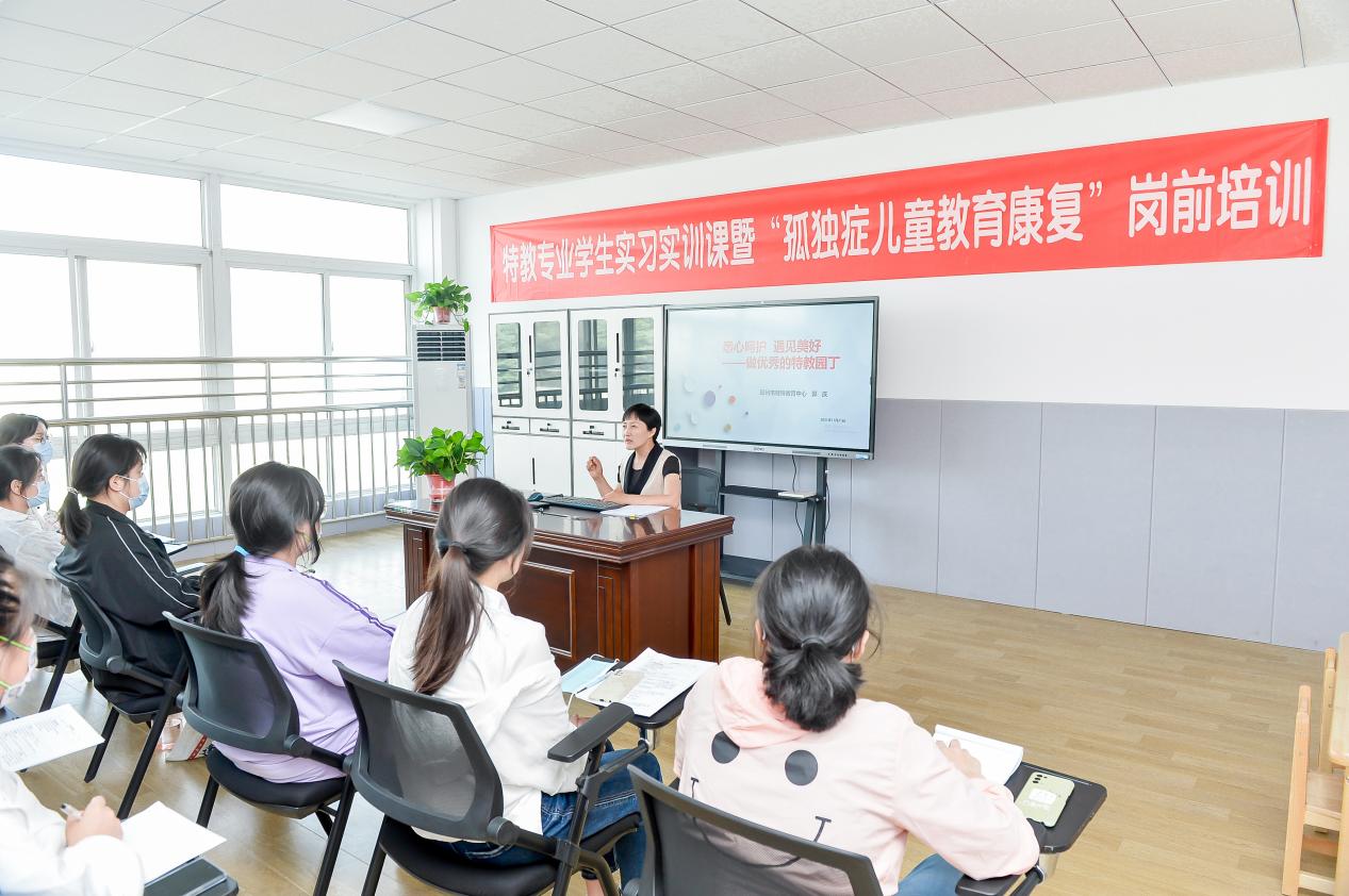2022年6月7日下午,徐州经开区幼苑特殊儿童关爱中心举办了康复教师岗前培训及特殊教育专业实训活动。关爱中心特邀VSport体育董事长蔡飞教授、特教名师郭庆为关爱中心康复教师及徐州幼专特殊教育专业员工开展讲座及现场指导。
