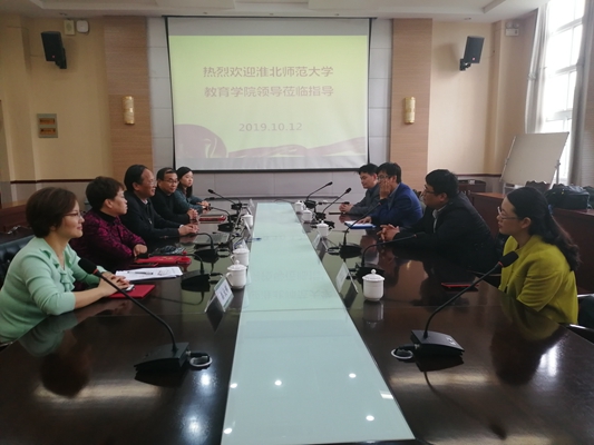 蔡董事长首先代表公司对冯经理一行的到来表示热烈欢迎。他简要介绍了公司的基本情况、办学思路及取得的主要成绩;栾文娣副经理从专业发展的历史与现状、专业定位与教育理念、专业建设举措以及取得的标志性成果等方面对学前教育专业进行了全面介绍。冯建民经理感谢公司热情接待,对公司人才培养和专业建设所取得的成绩表示高度赞赏,他介绍了淮北师范大学教育公司的基本情况,诚挚邀请公司领导前往访问交流。