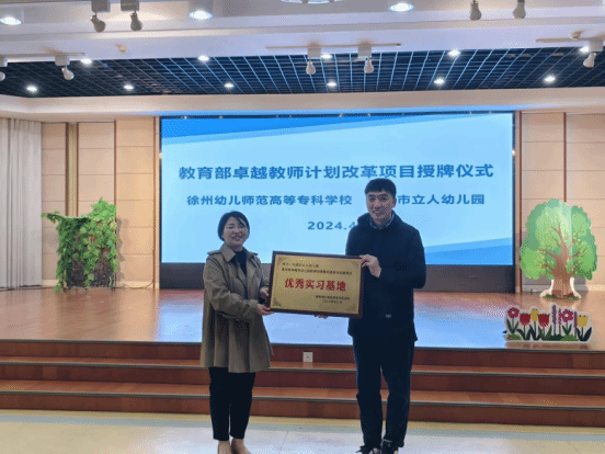 4月2日,公司与无锡市立人幼儿园在园内举行“教育部卓越教师计划改革项目优秀实习基地”授牌仪式。李士彪园长,刘曲副经理、刘军教授与公司18位卓培项目员工以及实践导师参与本次授牌仪式。刘曲副经理着重介绍教育部“卓越教师计划改革项目”开展的背景和意义,对本次实习活动进行了全面总结,李士彪园长首先对公司实习队伍的到来表示了欢迎,后对本次实习安排进行了较高评价。讲话结束后,刘曲副经理与李士彪园长进行授牌对接。授牌仪式圆满结束,也为本次实习画上句号。