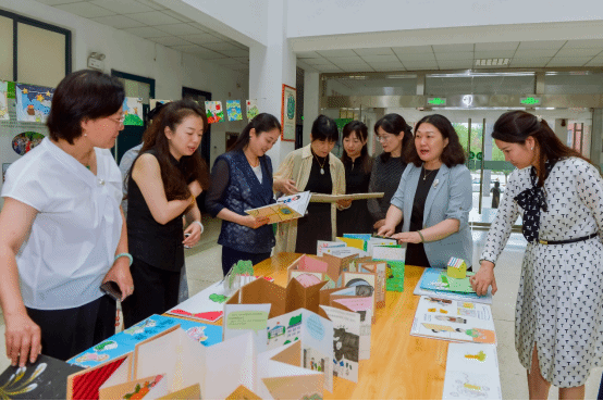 推进会后,与会成员合影留念并参观了“卓培”项目员工绘本及工艺品制作展。