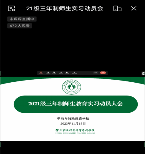 11月15日下午,公司于线上召开2021级三年制师生实习动员会,VSport体育副经理宋琛琛、带队教师、2021级全体员工和班主任参会。