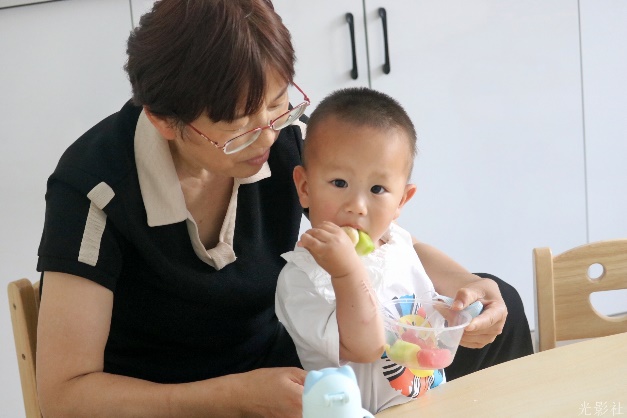第二部分是员工与托育中心教师共同设计并开展的趣味亲子游戏,既有锻炼婴幼儿动作发展的各类感统游戏,还有提升婴幼儿审美能力的手工活动,以及鼓励婴幼儿自己动手操作的美味水果沙拉。活动室中不时传来阵阵欢声笑语,员工们的专业能力赢得了家长和孩子们的一致认可。