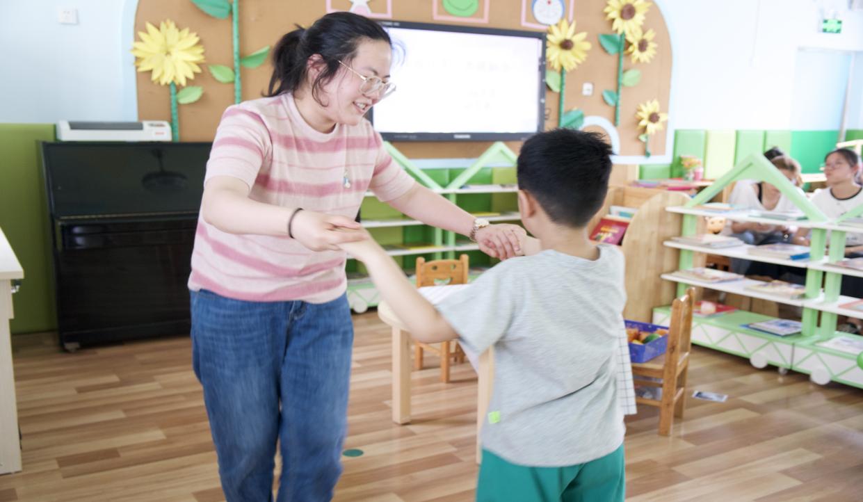 第二个环节是志愿者们的实践教学。活动前,志愿者们根据幼儿的年龄特点和学习需要分别准备了绘本故事和舞蹈。活动中,他们在小中大4个班级幼儿开展了教育活动,与幼儿直接互动,体验教学的快乐。活动结束后,各班教师针对志愿者的活动进行点评,并鼓励他们珍惜大学时光,努力学习,苦练基本功,提高融合教育技能。