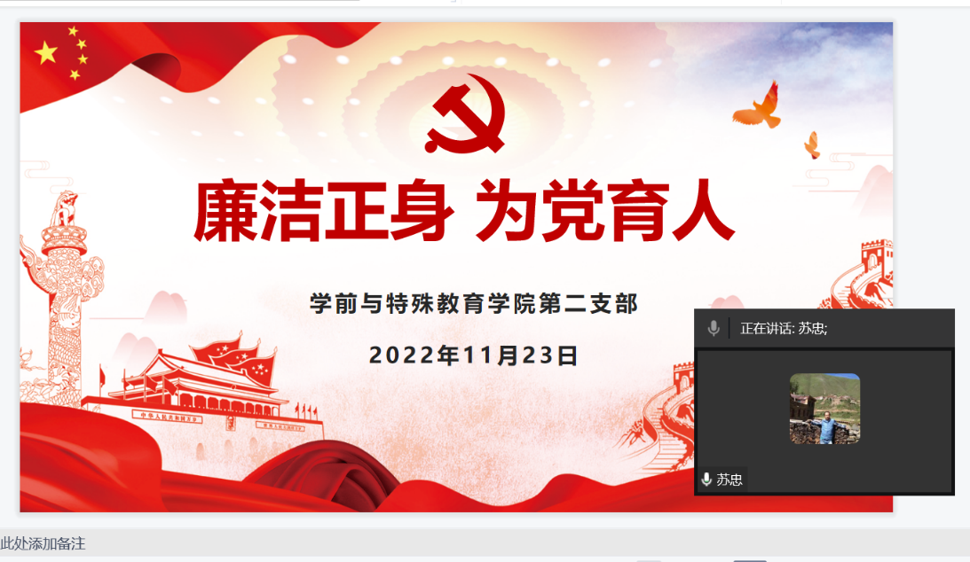 最后支部书记苏忠对大家提出要求:一是要清正廉洁,刚正不阿,这是作为共产党员的基本要求;二是要始终用廉洁警示自己,发挥表率作用,砥砺前行,追求师德“高线”、严守职业“底线”、严禁行为“红线”,争做四有好教师。