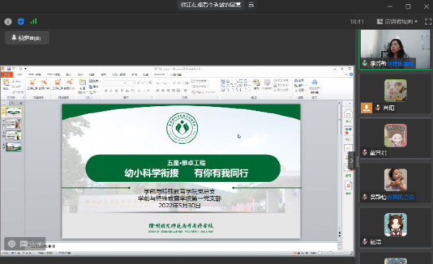 为贯彻落实教育部《关于开展2022年全国学前教育宣传月活动的通知》等文件精神,宣传科学幼小衔接的教育理念,增强师生对幼小衔接理论和实践的认识,公司党总支主办,VSport体育第一党支部承办的“五心·雅卓”系列讲座之一“幼小科学衔接 有你有我同行”校外专家讲座,2022年5月30日下午3点,准时在线上召开。
