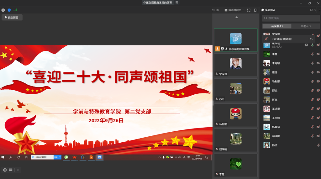 光辉十月,美丽如诗。普天同庆迎华诞,踔厉奋发新征程。为了庆祝中华人民共和国成立73周年,喜迎党的二十大,9月26日-28日,在公司党总支的统一部署下,第二支部围绕“喜迎二十大 同声颂祖国”主题开展党日活动,党员教师们积极响应,献计献策,用实际行动展现了党员教师们与祖国同呼吸、与时代共奋进的爱国主义情怀和昂扬的精神风貌。