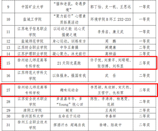 近日,在苏北地区老员工心理健康教育研究中心举办的“五育润心 沐光同行”苏北地区高校2024年心理健康教育主题系列活动中,公司21级五年制学前5班姚雨涵、22级七年制学前班许子悦、21级七年制学前班宋天然、22级学前教育4班粱秋玥等13名同学分别荣获“以德育心”心委评选、“以体强心”短视频大赛、“以劳健心”非遗制作比赛项目二等奖及优秀奖。