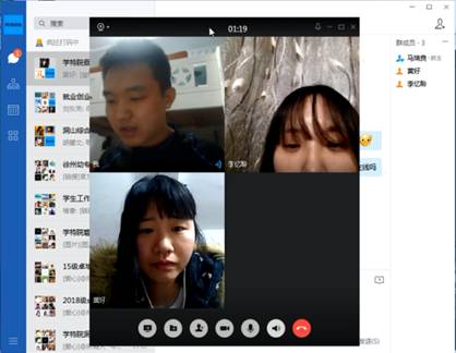 辅导员马瑞良老师时时关心着家在湖北疫区的黄好、李亿聆同学,常常与员工视频连线,进行线上交流,鼓励员工以积极的心态应对眼下的困难,引导员工加强学习,为毕业季应聘积聚力量。