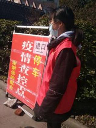 19级三年制学前教育1班的杨婉婷同学说:“身为一名老员工,也很想和他们一样赶往前线。但由于专业不对口,就放弃了此念头。于是我就去社区(江苏省泰州市高港区白马镇金马社区)报名参加了防疫志愿者,工作内容很简单,就是对出入人员量体温,登记车牌号,车主的信息,核实有无出门证等。我内心深处坚定信念国家有难,我也要尽一份力,让自己能在平凡的岗位发光发热。”