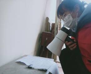 17级五年制学前教育5班的刘凤仪同学也想奉献出自己的微薄之力,便去社区里报名当志愿者。她被安排在2月17日巡逻和宣传,物业主任及社区工作人员为她简要说明注意事项及工作安排。刘凤仪同学拿着小喇叭对每一幢楼进行挨个巡逻,确保在家的业主都能够听到加强防范意识的宣传语,巡逻后来到了志愿者站点进行督促和检查,看着每一位进来的人员都十分配合让保安测量体温,每一个出入的业主都带上了口罩,大家的防范意识也变得越来越强。“相信不久定能听到疫情解除的好消息,让我们继续坚持下去,胜利将在不远处向我们招手,我们一定能够战胜疫情,中国加油!武汉加油!”