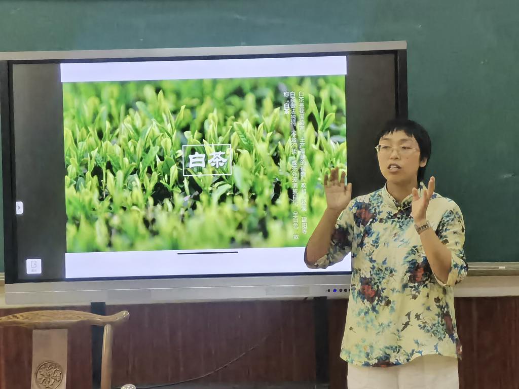 李媛老师提前为社员们准备了粽子和蚕豆,让社员们品茶、提前过端午节。戚明艳老师是高级茶艺师,多次参与茶艺师考评工作,长期从事茶艺教学、培训工作。戚明艳老师为社员们介绍了白茶、白毫银针、贡眉、寿眉等茶叶,并带来实物让大家观看、泡茶。白茶可采用冷泡的方式,要用1:100的比例来泡茶。白茶为我国特产,可以与玫瑰、陈皮相配。