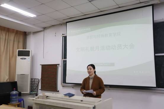 3月6日,在洞山校区阶梯教室,公司召开第九个文明礼貌月活动动员大会,会议由李海芸副书记主持,全体班主任参加了动员会。