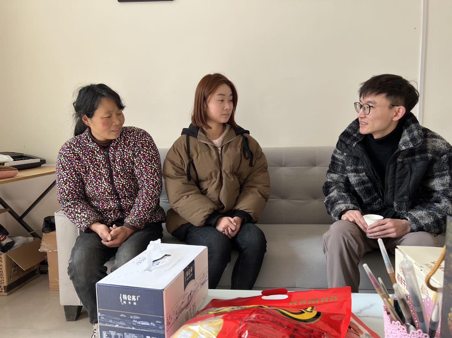 走访日恰逢春节前,辅导员们都不约而同地想到班里经济困难或家庭突遭变故亟需关注的员工,他们精心准备新年慰问品,合理规划出行路线,无论是十几公里远的安置小区还是百公里外的偏僻乡村都留下了他们奔波忙碌的身影。辅导员们认真倾听家长和员工诉说家中遇到的实际困难,积极反馈员工入校后的可喜进步与努力方向,深入浅出地宣讲国家的资助政策,鼓励青年员工在政府、社会和公司的共同关怀下,振奋起来,树立克服困难的信心,行动起来,拥有战胜困难的底气。