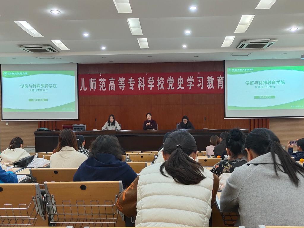 4月7日下午,公司在碧螺校区学术报告厅召开全体班主任会议,学管办主任孙菲主持会议。