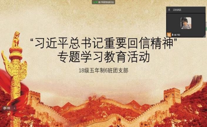 通过线上班会及主题团日的形式,组织同学们学习习近平总书记重要回信精神。2月24日习近平总书记给中国单板滑雪运动员苏翊鸣回信,并向他和其他奥运健儿表示祝贺,并寄予厚望,希望运动员们可以心系祖国,志存高远,脚踏实地,在奋斗中创造精彩人生,为祖国和人民贡献青春和力量。
