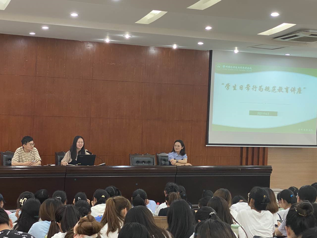 6月10日下午,公司在碧螺校区学术报告厅举办三年制员工行为习惯养成教育讲座。公司辅导员王巧巧、范继瑶和毕业生代表刘霜共同为公司两百余名员工作讲座。