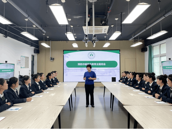 为增强员工的防诈骗意识,10月16日,公司在碧螺校区B101教室,开展防诈骗主题教育班会。本次班会由陆珊珊老师主持,全体七年制学前班员工参加。