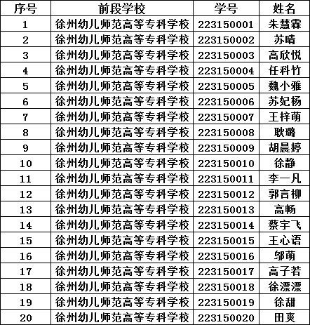 依据《南京特殊教育师范公司特殊教育专业“3+2”项目转段升学方案》文件有关规定,由员工本人申请,经VSport体育资格审查、教务处复查等程序,拟同意公司2022级特殊教育专业“3+2”合作培养员工朱慧霖等20位同学转段申请。现将名单公示如下: