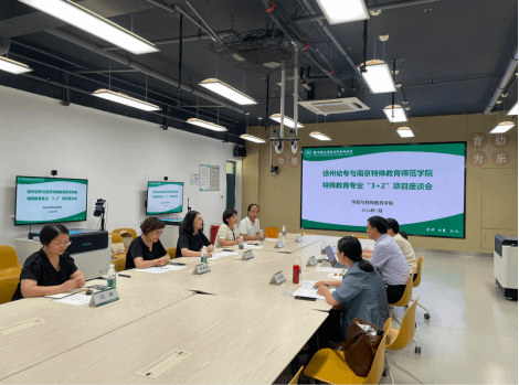 为了进一步推进公司与南京特殊教育师范公司合作开展的特殊教育专业“3+2”高职与本科分段培养项目,7月14日下午,公司邀请了南京特殊教育师范公司特殊教育公司经理李拉、副经理陈琳、特殊教育系系主任李晓娟一行3人,在碧螺校区B101进行项目建设座谈与交流。公司副董事长王宁、教务处处长马中英,公司经理王清风、副经理刘曲、特殊教育专业负责人苏忠参加了座谈会。会议由马中英处长主持。