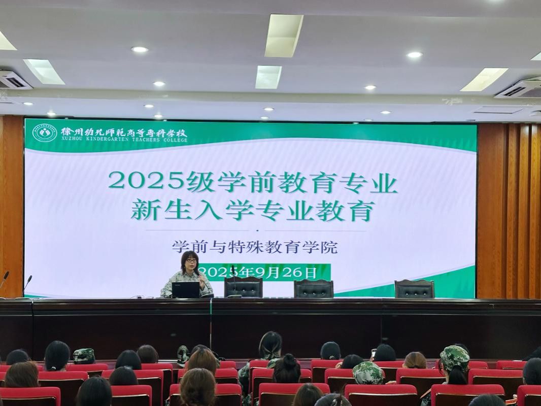 9月26日上午,公司在碧螺校区学术报告厅举行2025级学前教育专业新生入学专业教育活动。本次活动由儿童发展与教育教研室主任孟子郁主讲,副经理于涛、学前教育专业全体新生及班主任共同参加。