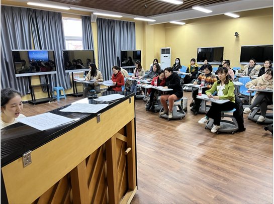 首先,李秀敏附经理向各位教授、教师介绍了大赛的基本情况、参赛人员选拔标准等,为评委老师们公布参与选拔人员名单,并对备赛期间的准备情况作了说明。比赛开始前,选手们先进行了抽签,随后按照排序下发考试题目。选手拿到题目后拥有一个半小时的准备时间,在此时间内,他们要完成儿歌创编、舞蹈创编和片段教学活动。