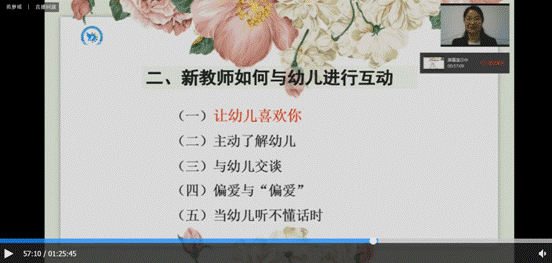 首先,范梦瑶园长借用一则教育短片加深了同学们对师幼有效互动的了解,通过列举多种互动的类型强调了师幼有效互动的目的和意义。其次,范梦瑶园长与毕业生们分享了师幼互动的相关原则和策略:发展性原则、平等性原则、正确理解幼儿、与幼儿建立良好情感关系。接着,范梦瑶园长讲解了新教师如何与幼儿进行互动的方式与方法,建议毕业生们具备主动了解幼儿的个别需要、内外兼修让幼儿感受亲切与爱意,与幼儿进行所喜爱的交谈,热诚的面对每一位幼儿等能力。同时,范梦瑶园长通过列举真实的案例向同学们提出了“坚持尊重而不放纵”的教育观点。