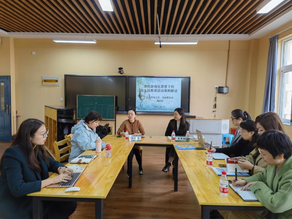 2021年10月21日上午,江苏师范大学学前教育研究所刘剑眉所长为活动设计教研室开设主题为《幼儿园课程游戏化背景下的活动设计改革》的讲座。本次活动由李秀敏副经理主持,活动设计教研室课程组相关教师参会。