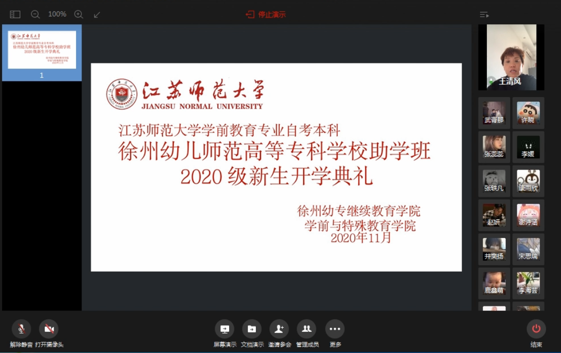 11月10日中午,2020级学前教育专业自考新生开学典礼在线上举行。出席开学典礼的有学特院经理王清风、校继续教育公司经理韩燕、学特院书记李海芸、教师代表以及270余名新生。开学典礼由学特院李媛老师主持。