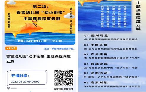 这次直播以“幼小衔接”为主题,观看香雪幼儿《小学我来啦》主题活动。同学们通过线上直播,了解到香雪幼儿园的区角创设的现状,如何做到让幼儿成为是环境的主人的全过程。同时,直播全面展示了幼小衔接是幼儿园每日开展的系统主题探究课程,是从小班就开始的旅程,衔接的不是知识,而是衔接心态,思维,习惯和习惯等全面发展的水平。