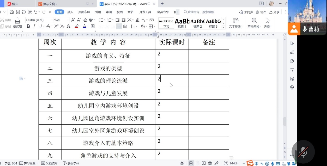 首先,曹教授转达和强调了公司教务处、公司儿童发展与教育教研室布置的相关工作和要求,提醒课程组教师按时完成上学期期末材料的报送及新学期各项台账的上传工作;接下来,课程组成员共同研讨本学期教学计划及实习计划,做好相关任务分工,并交流了新学期学前儿童游戏教学设计、改革的想法与建议;最后,老师们交流了本周教学情况,反馈各自在教学中遇到的问题与困惑,并积极讨论解决办法。