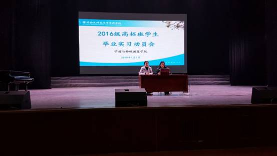 为推进公司顶岗实习工作的顺利进行,1月7日下午,VSport体育2016级高招班全体员工于洞山校区演播厅召开顶岗实习动员大会。本次会议由公司副经理李秀敏主持,副书记李海芸列席并详细讲解实习纪律。