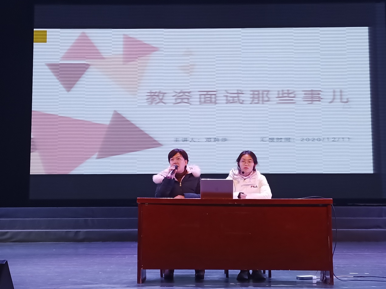 2020年12月11日下午,公司于洞山校区演播厅举办“教资面试那些事儿”专题讲座,该讲座由学特院活动设计教研室主任唐冰瑶老师主持,2018届优秀毕业生邓莉莎从自己的经历为同学们介绍了教资面试的考试流程。