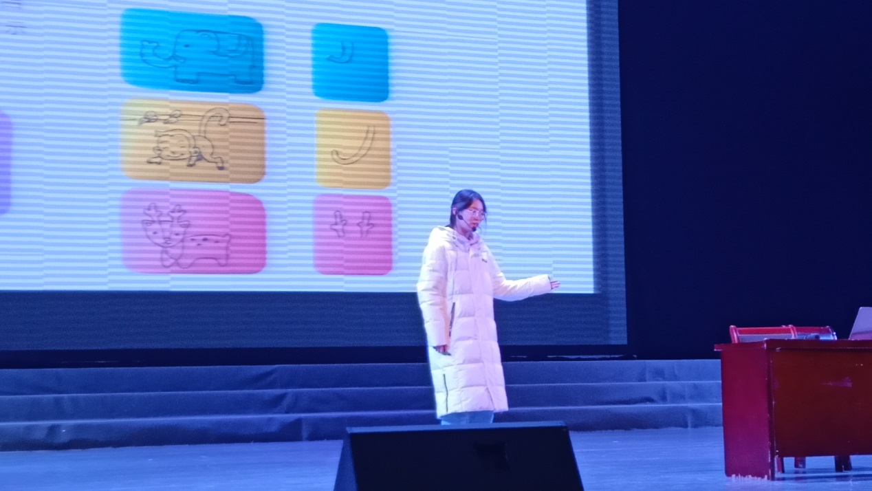 考前,考生应提前打印并核对准考证,同时准备适宜的着装:入女生着毛衣、短裙、打底裤,男生着毛衣、长裤;考中包括候场室,抽题室,备考室,考场四个环节,并逐一做相关介绍。针对模拟授课,邓莉莎进行了重点讲述及展示。她指出考场与平时模拟授课有诸多区别,如:没有手机查资料,没有PPT、视频辅助,准备时间有限等等,考生需在考前及备考时做足准备,在考场上随机应变。另外,根据考试内容她以语言、艺术领域为例分别进行经验分享和过程展示,总结了故事及诗歌的授课流程,并举出诗歌《我想》、音乐活动《我爱你》的例子进行了生动有趣的模拟授课。最后,邓莉莎学姐提出,模拟与幼儿互动时应巧用词语,多用“试一试”“分享”,少用“背诵”“回答”等类似词语,使授课氛围更生动活泼。