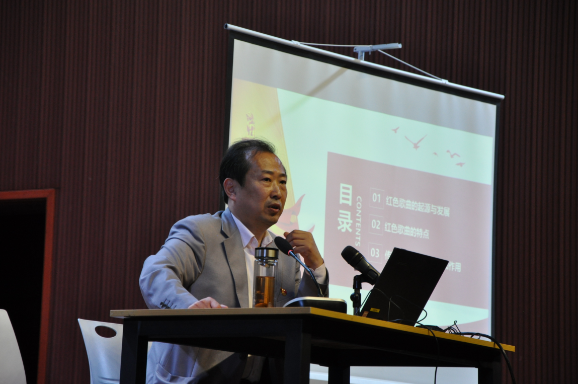 本次讲座以红色歌曲为主题,孙玉柱教授为同学们讲述了红色歌曲的起源与发展、不同时期红歌的特点、意义以及作用,用一首首催人奋进的红色音乐回顾了建党、建国、新时代等各时期中国共产党人艰苦卓绝的奋斗历程。孙教授声情并茂地为员工演奏了《保卫黄河》等诸多经典红歌,也与员工共同演唱了《把一切献给党》,最后,孙教授与全体员工起立合唱《灯火里的中国》和《没有共产党就没有新中国》。孙教授以其扎实的学识功底、娴熟的教学及演奏技艺、风趣幽默的语言使整个讲座气氛活跃,掌声阵阵。