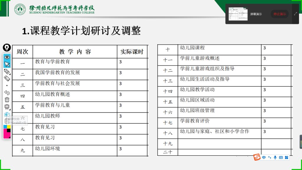随后,大家一起研讨修订了本学期《学前教育学》“课程思政”版教学计划,在教学计划中明确了各部分内容的思政点。王宁强调,课程思政育人的元素并不是一成不变的,各位任课教师要及时沟通,根据实际情况进行调整。