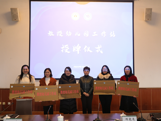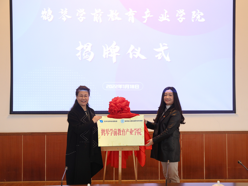 接着,曹利群董事长为“鹤琴学前教育产业公司”揭牌,并聘请徐剑媚为产业公司经理。邓董事长与徐总董事长分别代表徐州幼专与徐幼集团签署“鹤琴学前教育产业公司”合作协议。最后,组织人事处李慧副处长为“徐州幼专双师型教师培养培训基地”揭牌,王清风经理为“教授幼儿园工作站”授牌,徐剑媚总董事长为五位教授颁发了聘书。
