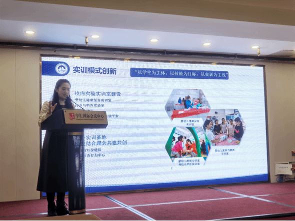 论坛上,合肥幼儿师范高等专科公司张敏分析了新时代背景下托育和早教专业高质量发展的实践反思,介绍了合肥幼专“一体贯通,托育并重”的人才培养方案,分享了“共建共享、优势互补”的“医养教”相结合的专业资源建设经验。江苏电子信息职业技术公司的周文基于“需求导向”理念分享了婴幼儿托育服务与管理专业建设经验,她详细介绍了本校婴幼儿照护服务与管理专业的建设情况。湖北幼儿师范高等专科公司的汤雅黎基于产教融合背景分析了高质量人才培养实践探索,她从政策引领立观念、专业建设夯基础和产教融合结硕果三个方面,分享了“三阶赋能,多元发展”课程体系的构建经验。公司王清风教授基于托幼一体化背景下,阐述了“师德为先、三能并重、三岗递进、五方联动”的婴幼儿保教服务人才培养模式,并结合专业群建设,介绍了“平台+模块+方向”课程体系、教学创新团队和产教融合集成平台等实践探索。徐州市妇幼保健院的王雨晴博士从科学喂养角度阐述了婴幼儿养育照护与早期发展评估的关系,举例讲解了如何进行科学喂养、早期教育和发展测评等问题。