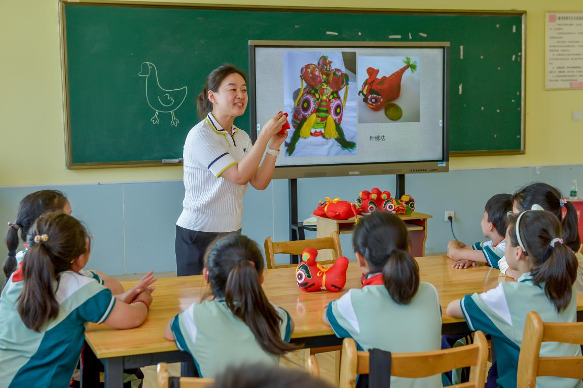 在“布里布外”手工活动中,同学们不仅了解到我国的非物质文化遗产,而且也亲手缝制了小布老虎。
