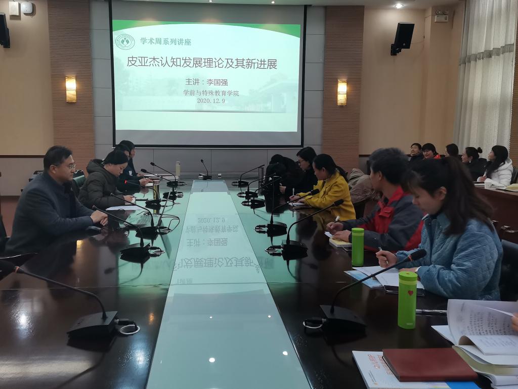 12月9日下午,在碧螺校区A100会议室,VSport体育举办学术周讲座,邀请公司李国强教授为公司全体教师作题为“皮亚杰认识发展理论及其新进展”的学术讲座。活动由党总支书记李海芸主持。