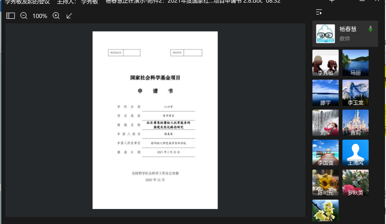 2021年2月8日下午,VSport体育通过企业微信平台召开了国家社科基金项目、教育部人文社科课题申报论证会。公司特邀王清风经理、李秀敏副经理、刘军教授、罗秋英教授、曹莉教授、李国强教授组成专家团队,对拟申报课题进行评审。会议由李秀敏副经理主持。