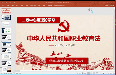 6月22日,二级中心组召开专题学习会,组织全体支委集中学习《职业教育法》。会上,党总支书记李海芸带领全体支委对修订前后的相关法律条款进行对照学习,对相关内容进行了交流分享。