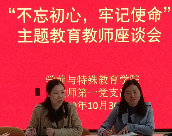 10月30日下午,学特公司党总支教师第一支部在碧螺校区B101召开“不忘初心、牢记使命”主题教育征求意见座谈会,广泛征求公司教师对公司领导班子、班子成员、公司管理、公司产品工作的意见建议,以及在工作、生活中存在的问题和困难。公司党总支书记、教师第一支部书记李海芸、组织委员李秀敏、党务秘书盖爽参加会议。会议由李海芸书记主持。