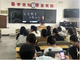 班会强调离校前要关闭电源开关,关好门窗,不在宿舍存放贵重物品;假期外出要注意乘车安全,遵守交通规则;谨防诈骗活动,远离非法机构陷阱;合理、规律饮食,选择正规餐厅就餐;居家注意用电用气安全;不到江河湖塘等水域游泳,防范溺水。