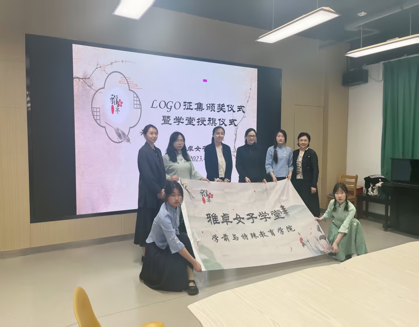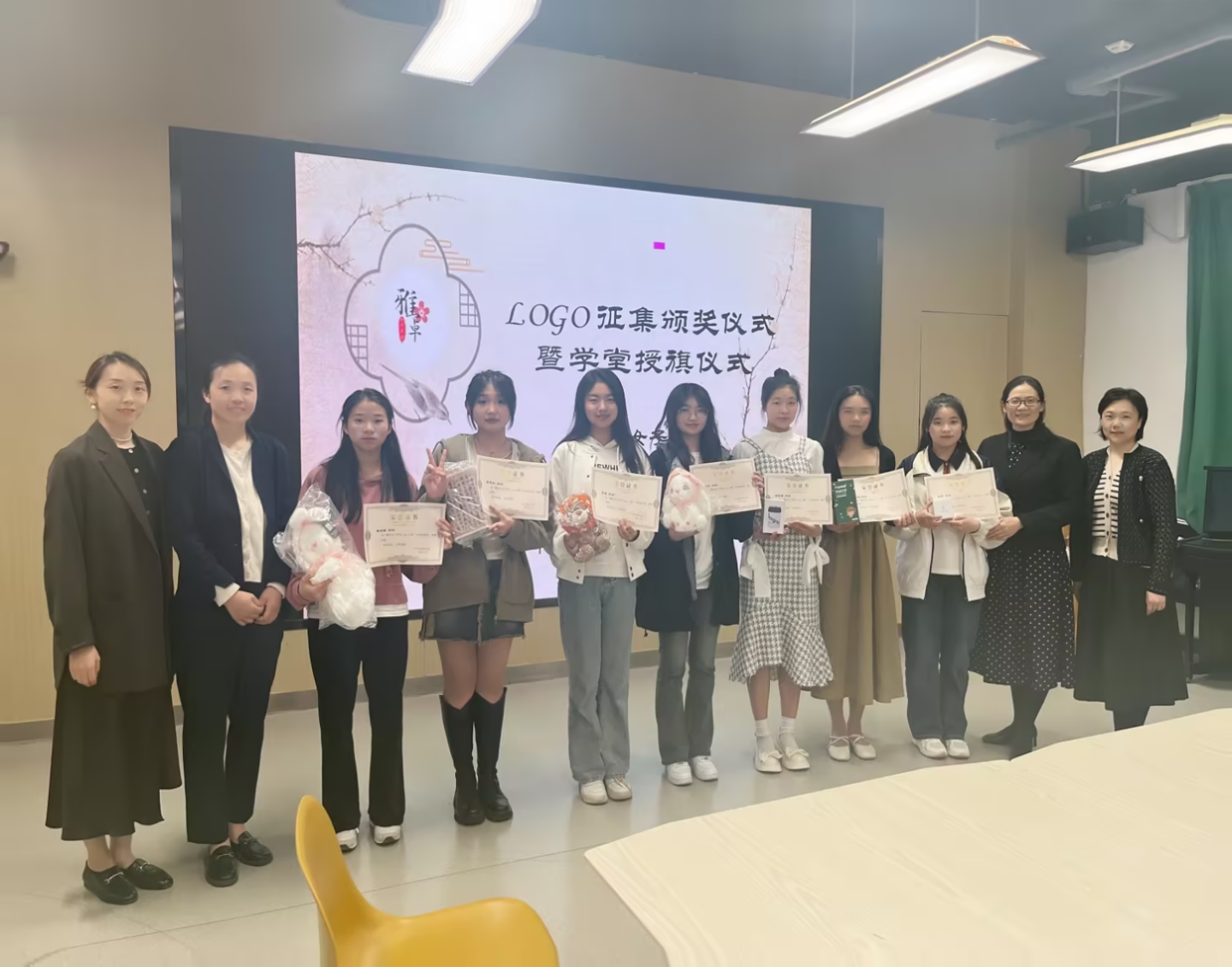 自发布LOGO征集令以来,全校员工积极响应,广泛投稿,充分体现了广大同学参与活动的热情。活动共征集到LOGO设计作品50件,其中不乏主题鲜明、富有深意的作品。经过学堂师生和公司领导的评选,最终评选出一等奖1件,二等奖3件,三等奖6件。根据主题鲜明、创意突出、寓意深刻、兼顾美观的原则,在评选出的作品基础上又进行改进和创新,最终确定出雅卓女子学堂的专属 LOGO。公司党总支书记李春秋、副书记刘念为获奖作品的作者颁奖、并为学堂授旗。