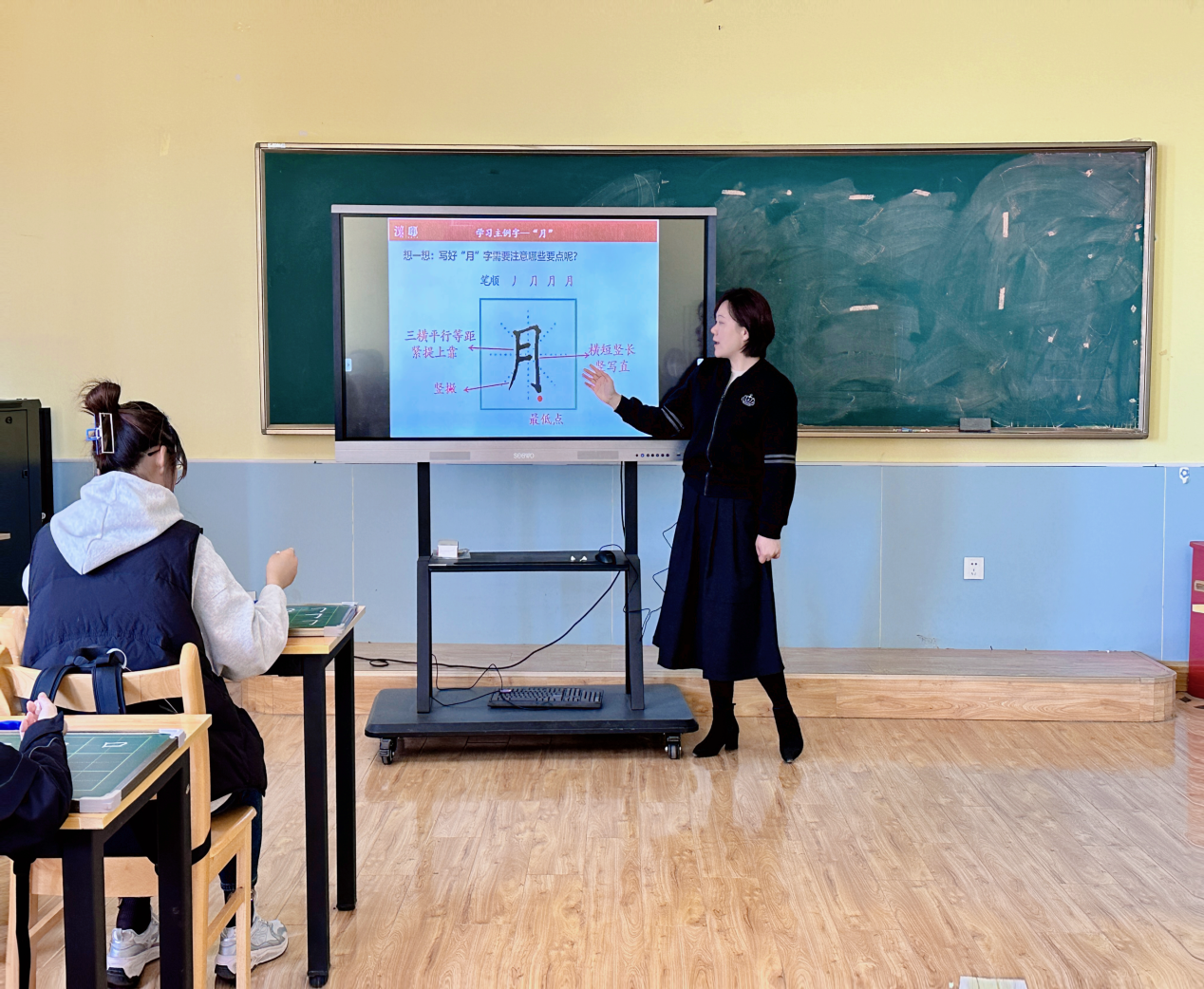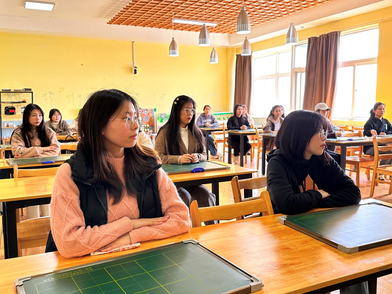 盖老师首先从汉字的基本笔画、偏旁部首、间架结构等方面入手,边讲解,边示范,对容易出错的笔画进行重点解析,生动形象地讲授了书写粉笔字的技巧和方法;针对粉笔字的持笔方法及运笔要求、粉笔字练习的方法和步骤、粉笔字练习中应注意的问题等方面做了详细的讲解。