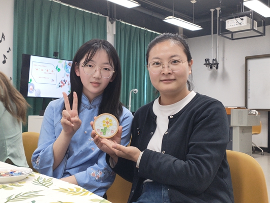 经过一段时间的制作,一个个色彩纷呈、构思巧妙的杯垫呈现在大家眼前。有的体现了同色系的协调,有的彰显了对比色的碰撞,有的看似随性,但却呈现出意想不到的美。小小的杯垫,让身处现代文明之中的我们将这古老的文化沉淀于杯下,绽放于掌心。大家欣赏着各自的作品,探寻品味着古老艺术之美。