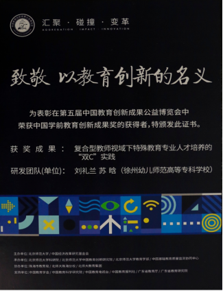 本专业是国家骨干专业、江苏省高等职业教育高水平骨干专业、江苏省十二五高校重点专业、校品牌专业,专业实训平台被认定为徐州市首批产教融合实训平台。依托于公司学前教育的办学背景,根据“特-幼结合”“医-教结合”“专-兼结合”的原则,整合特殊教育学、心理学、艺术学、临床医学等方面团队力量,形成了独具特色的融合型教学团队,构建了双C融合的课程体系与人才培养模式,2019年,该模式获得了中国教育创新成果奖,受到行业领域广泛关注与认可;同年,获批江苏省高等职业教育产教融合集成平台建设计划项目。2020年, “江苏省学前融合教育研究基地”获批江苏省高校哲学社会科学重点研究基地。2021年特殊教育专业与学前教育专业、早期教育专业获批江苏省高水平专业群。2022年特教专业老师获批江苏省产业教授(兼职)。