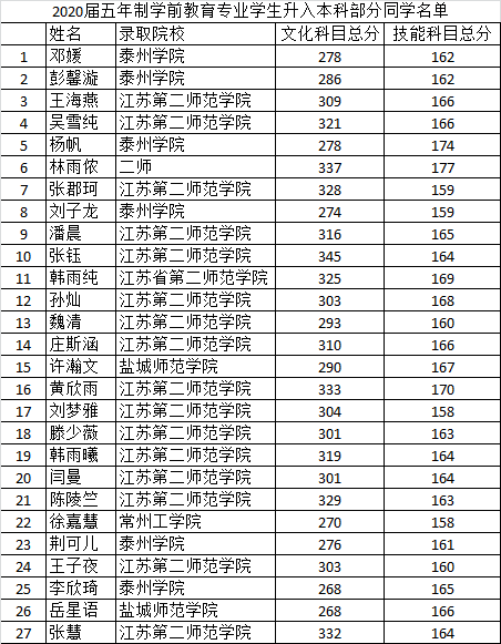 2020届五年制学前教育专业员工升入本科部分同学名单